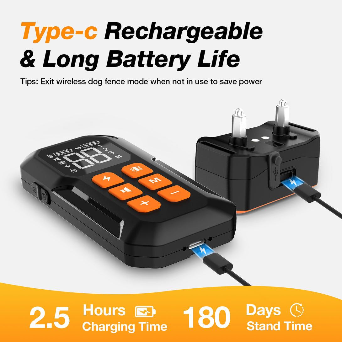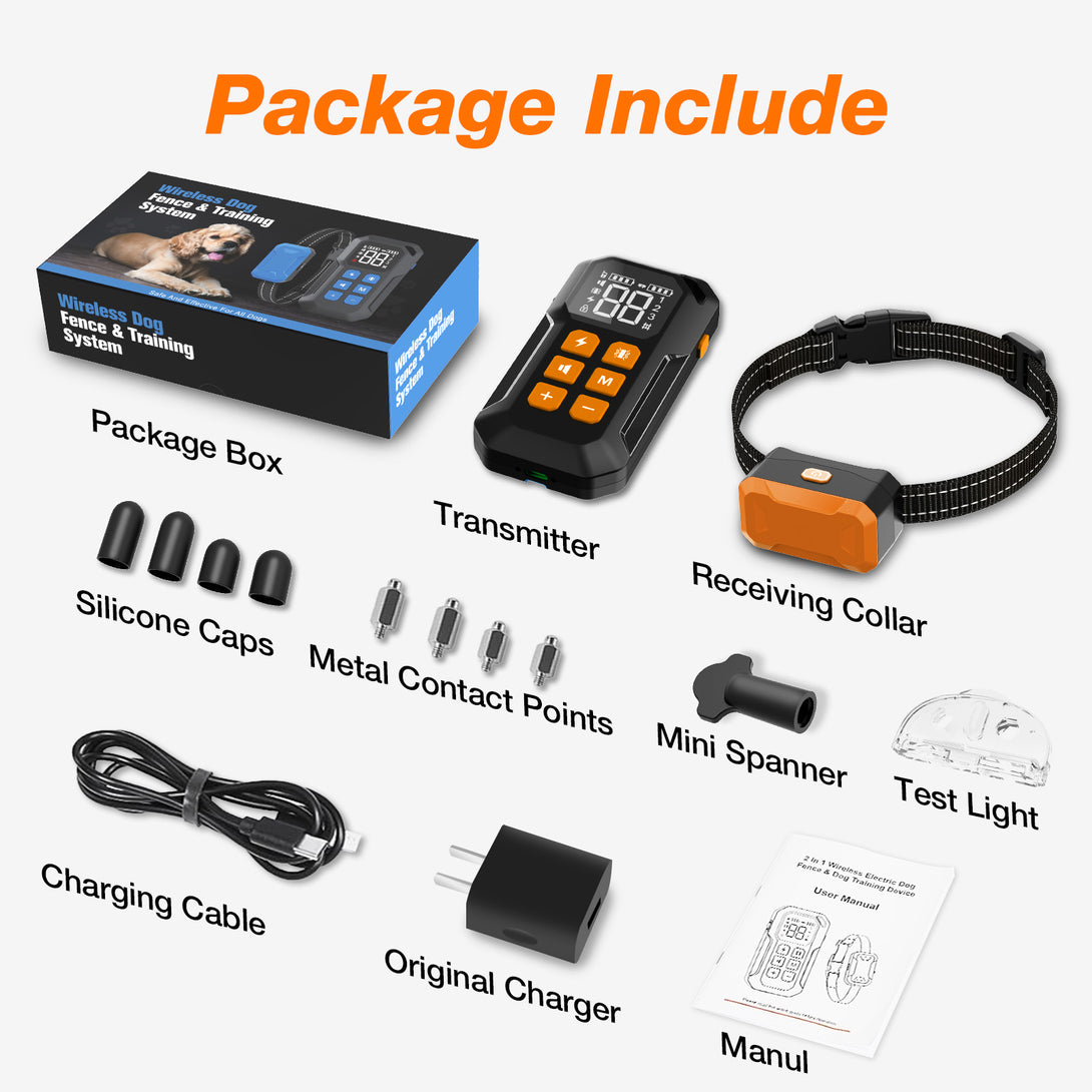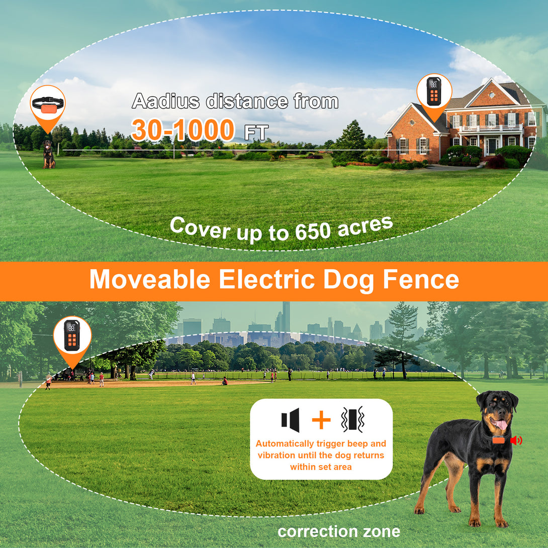 - No Wire To Bury: Our Wireless Dog Fence system offers a comprehensive solution, include wireless dog fence and training collar, effective manage and guide your dog's behavior without the time or hassle of burying wires.