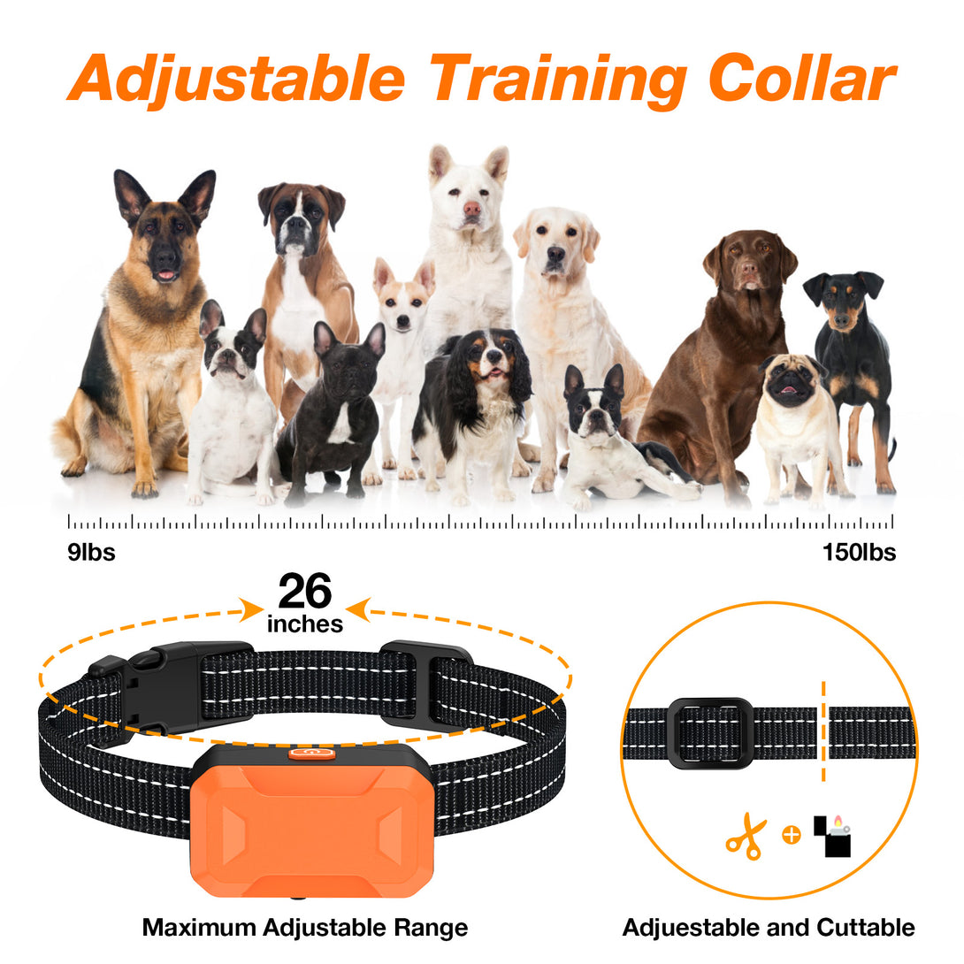 - Fits Most Sizes of Dogs: Unlike traditional in-ground fences, this wireless dog fence allows your pet to return home without being corrected if your pet passes the boundary,with an adjustable strap that fits dog neck sizes ranging between 6 - 26 inches. Suitable for dogs weighing between 9-150 pounds.