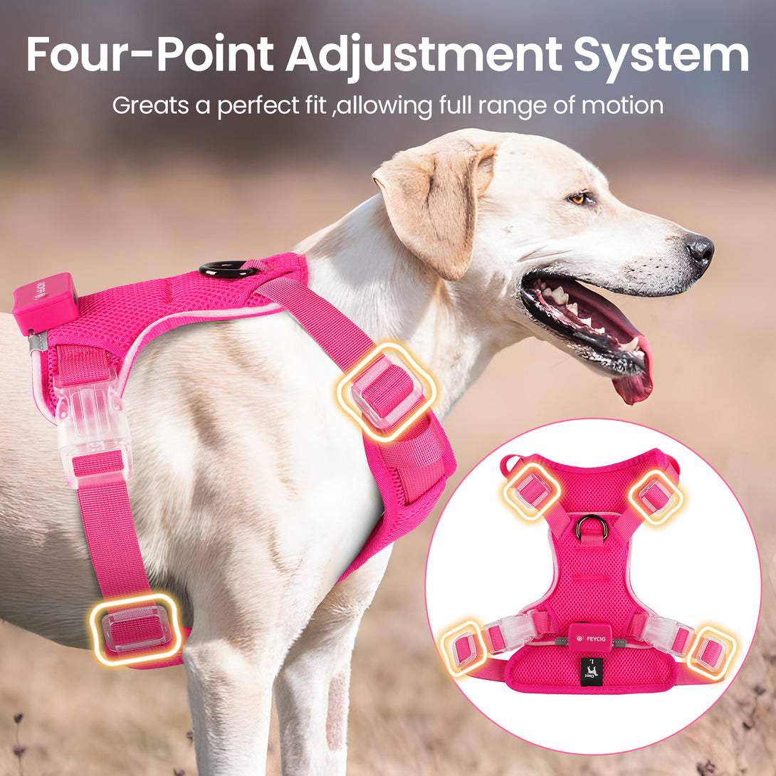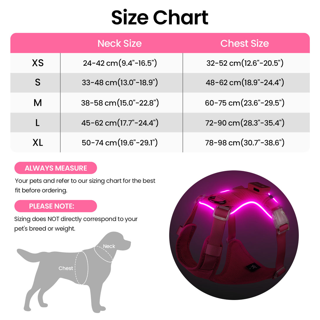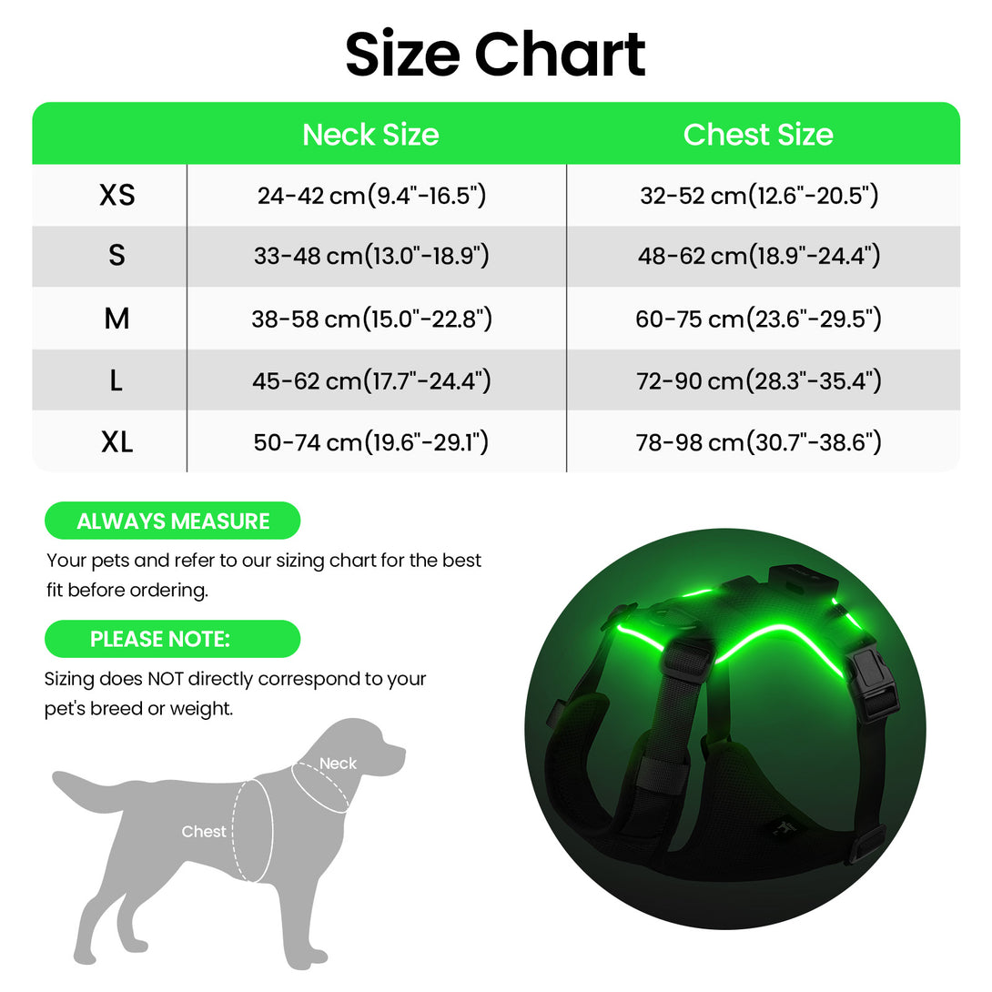 - FULLY ADJUSTABLE : The LED dog harness featured 4 easy adjusting straps and buckle around the body. Our adjustable dog harness allowing for a customized fit for dogs of varying neck and body ratios,No worries about slipping out.