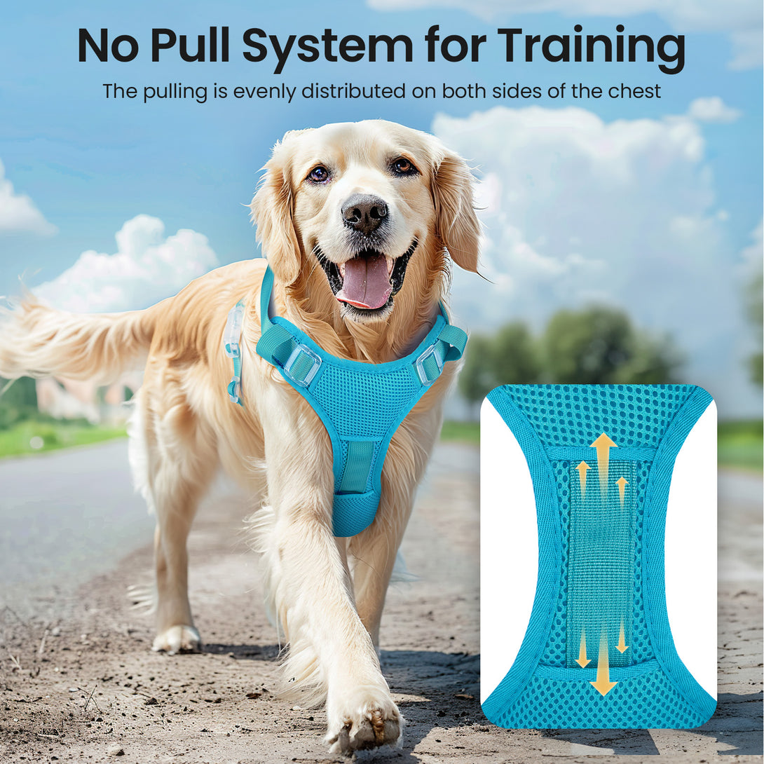 NO PULL,NO CHOKE:Our non-pulling dog harness designed with A round metal ring inside the chest ,which connect the left/right and the front straps ,Distribute the pulling tension evenly across the chest but not neck.Perfect for dog training or dogs who tend to pull.