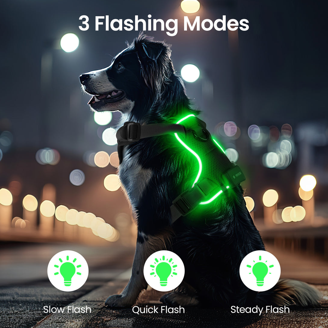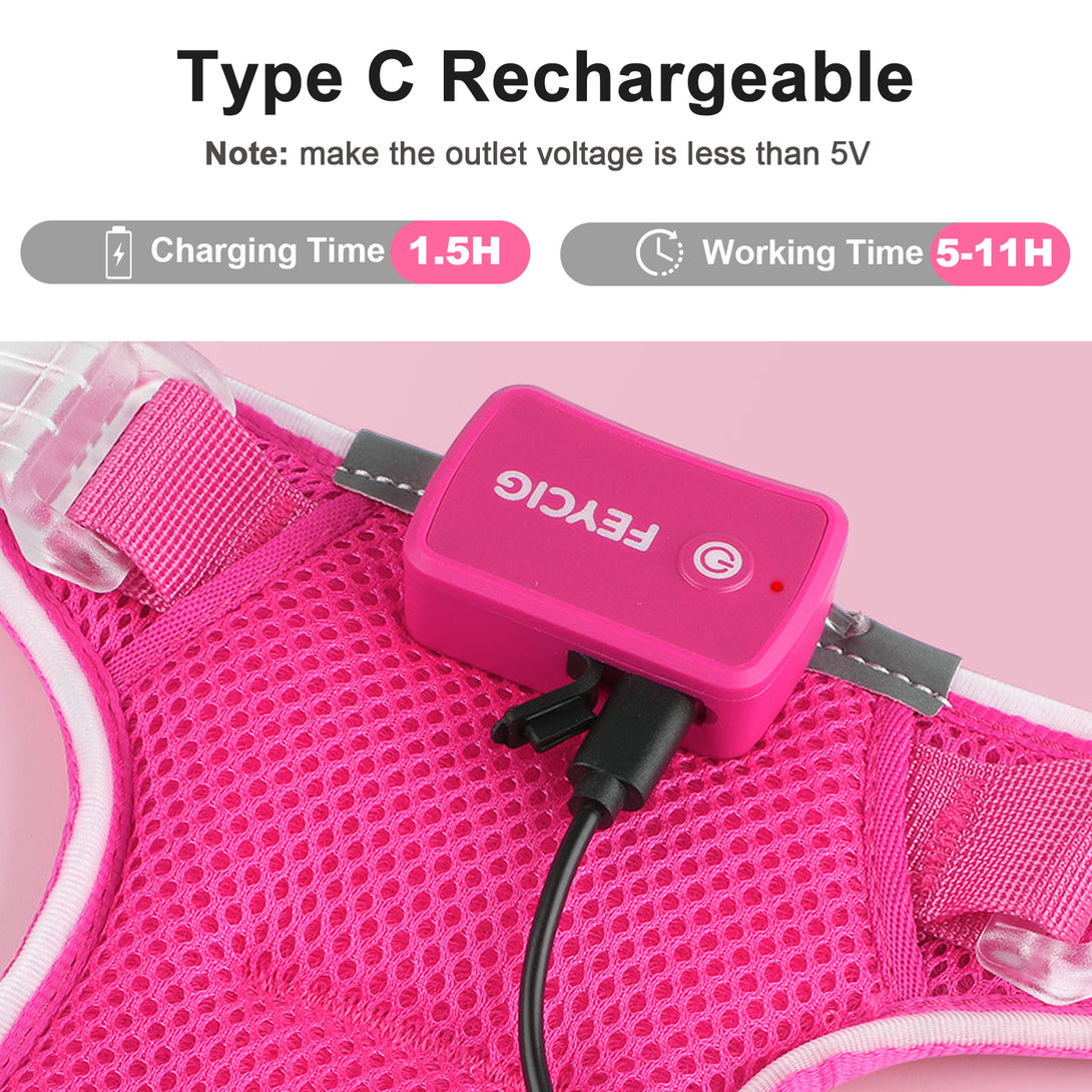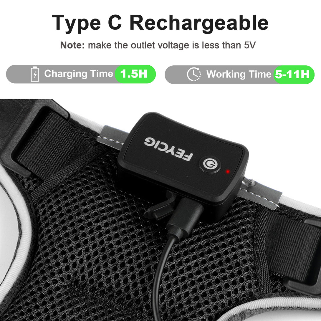 - Type-C RECHARGEABLE:The 250mAH lithium battery holds up to 5-11 hours on fast/slow/constant glowing mode .The flashing light make your puppy stand out with this lighted dog harness!if you have any problem,please contact us.