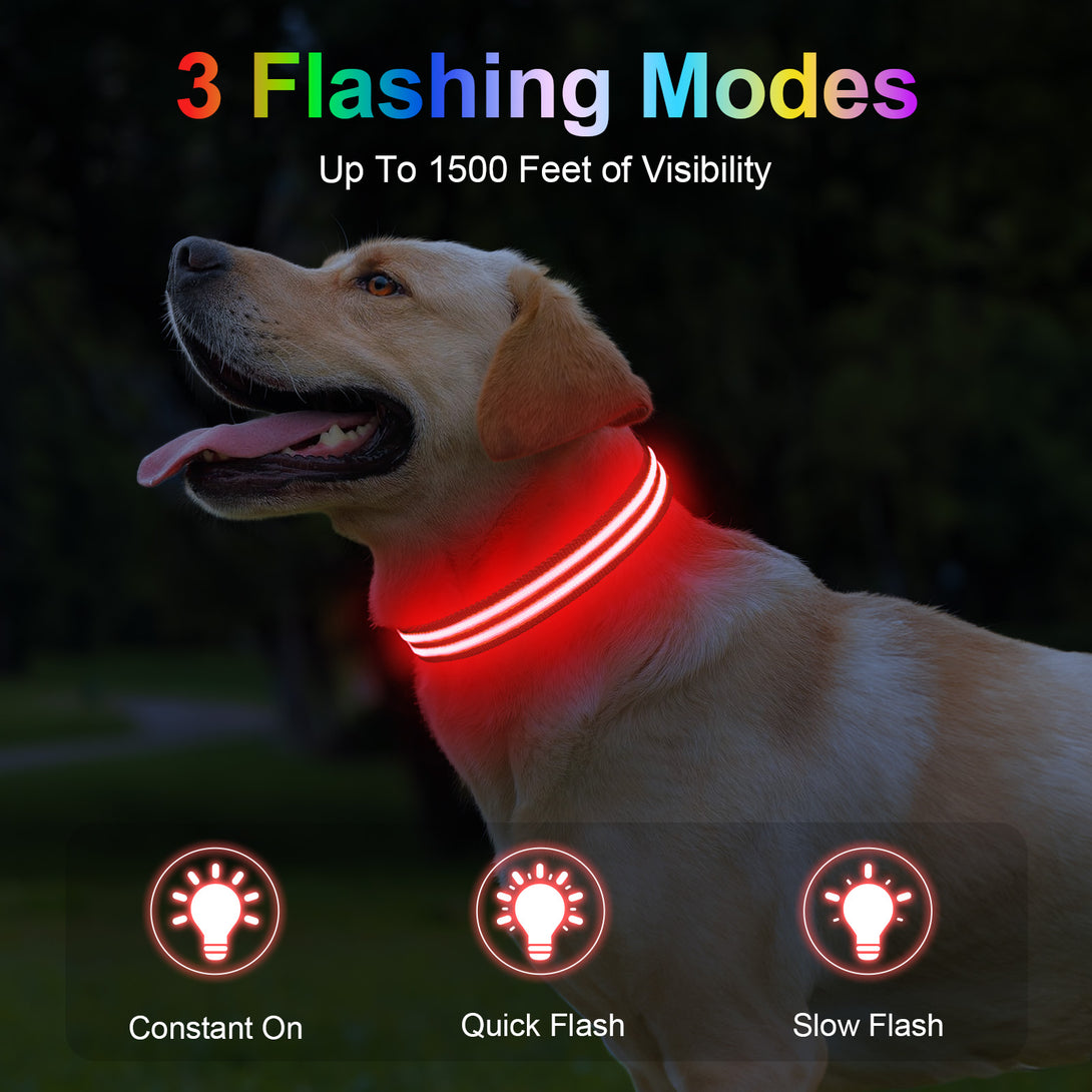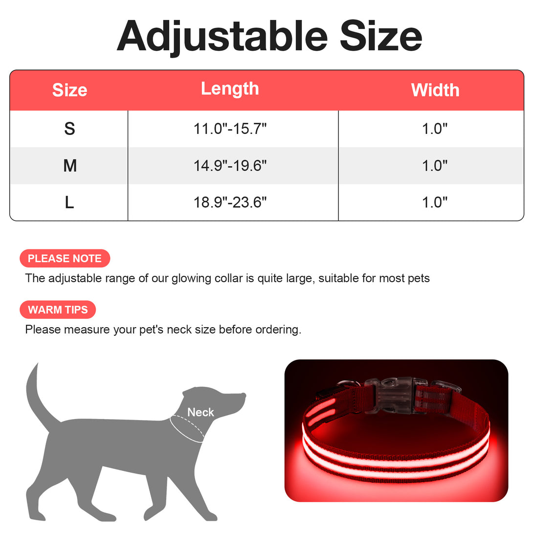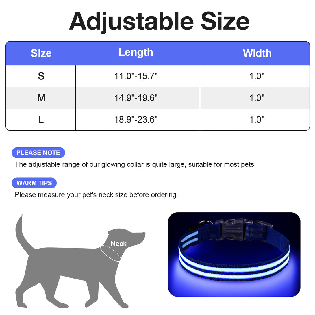 - 3 Flashing modes: fast flash, slow flash, steady glowing,make your pets stand out.This light-up dog collar is perfect whether day or night. please contact us if you have any problem.
