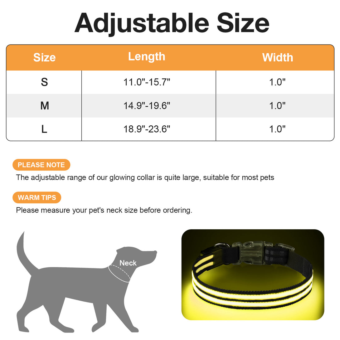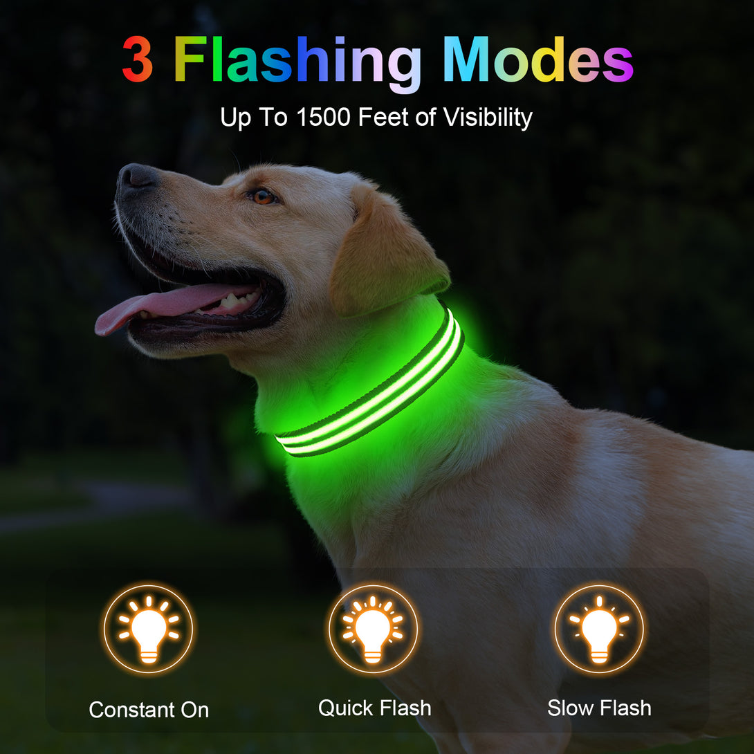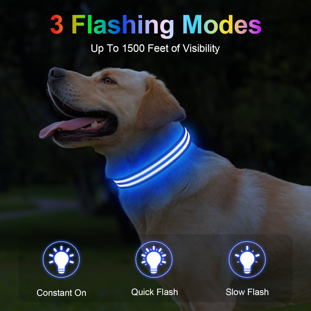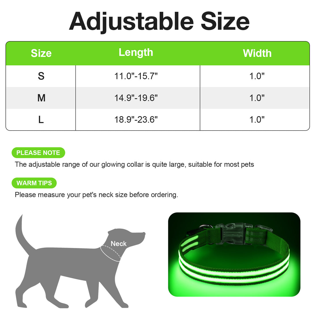 - 3 Flashing modes: fast flash, slow flash, steady glowing,make your pets stand out.This light-up dog collar is perfect whether day or night. please contact us if you have any problem.