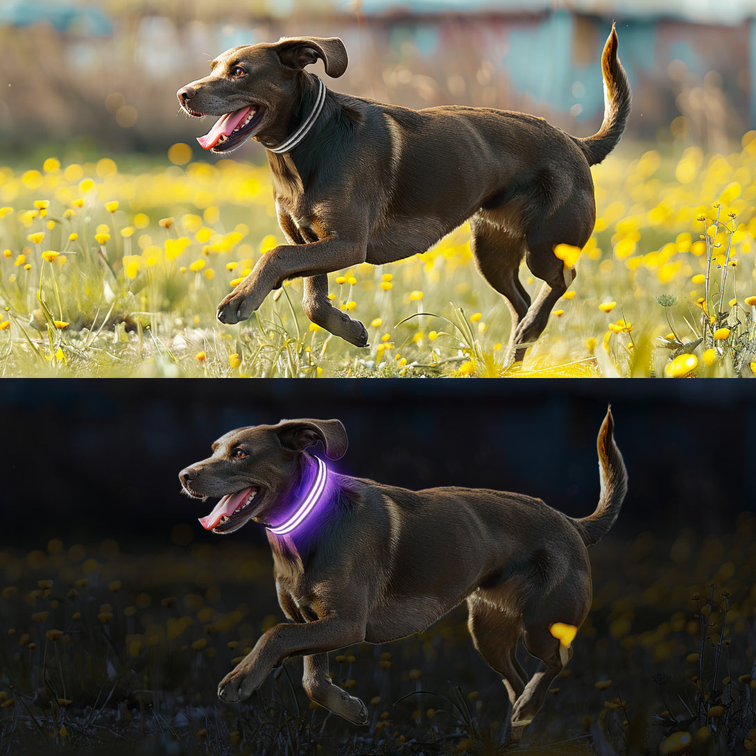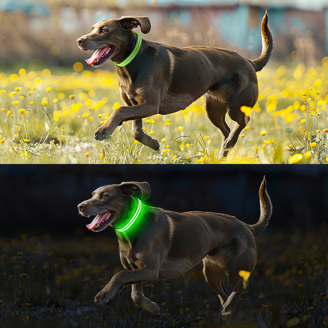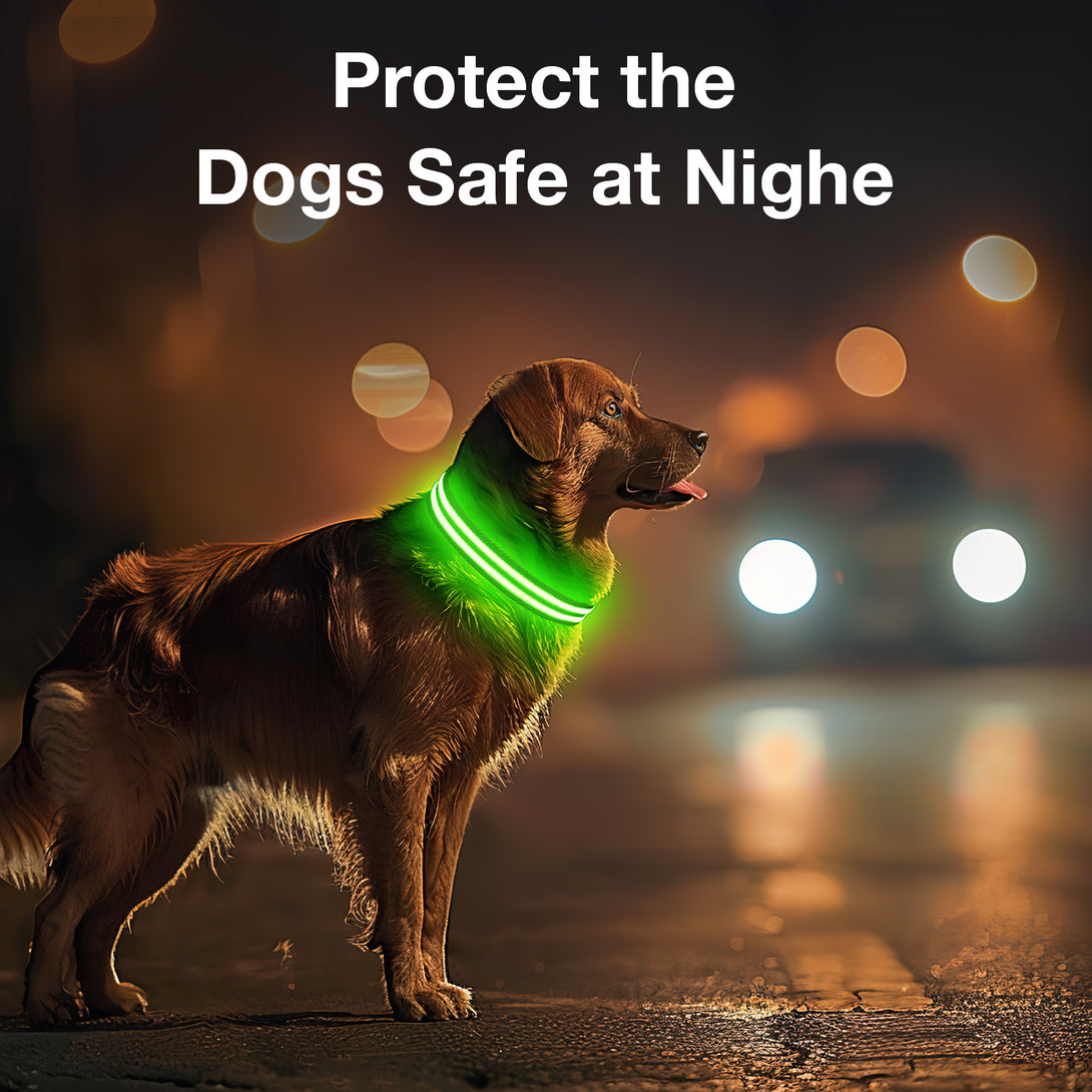 - High Visibility Light Up Dog Collar:Dual TPU Fiber Optic provides 360-degree illumination and visibility up to 1600 feet,protecting your dog from lost or vehicles while walking,Greatly improves your pet’s safety at night.