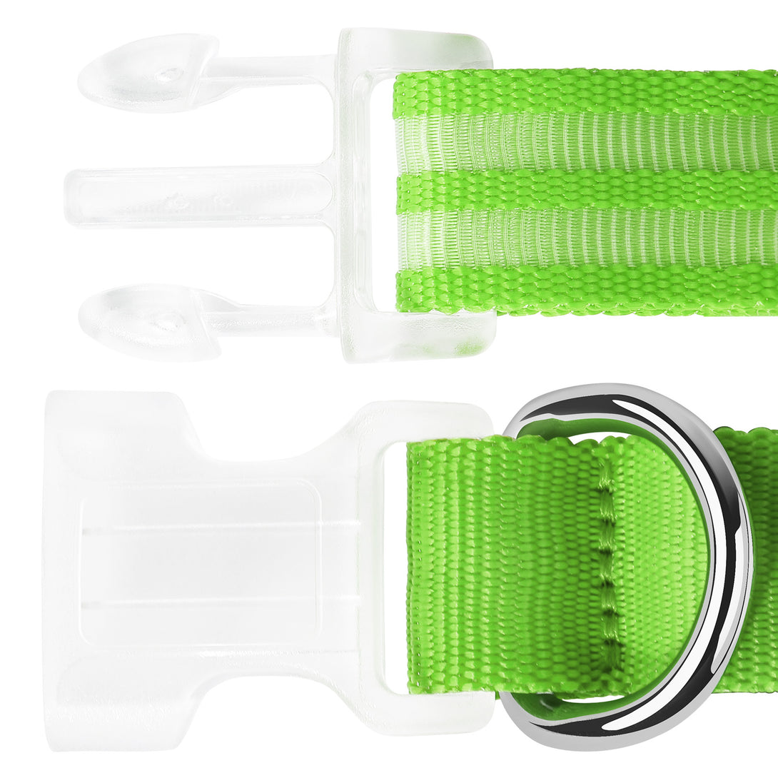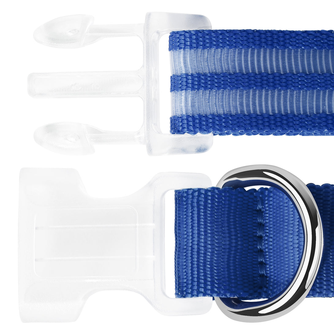 - Waterproof Glowing Dog Collar: The dog collar webbing is made of high quality nylon material,which is wear-resisting, flexible, comfortable, lightweight, waterproof , can be used snowstorms, heavy rain, and other weather, but not for swimming.
