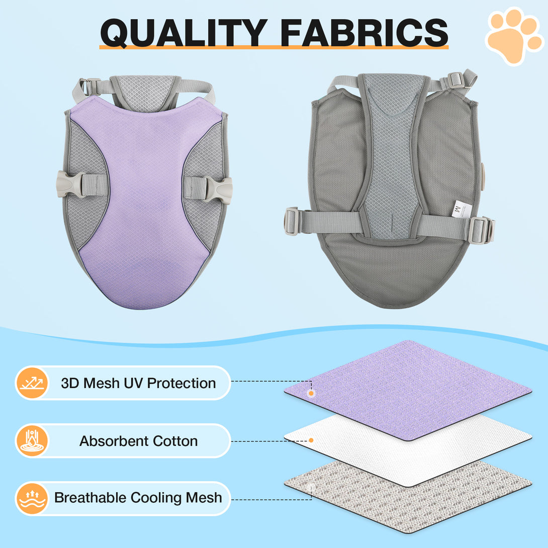- BREATHABLE FABRIC for Cooling Efficiency: Our Dog Cooling Vest features innovative 3-layer fabric technology. The outer layer reflects heat to promote evaporation, the middle layer absorbs and retains water effectively, while the mesh lining keeps your dog dry and comfortable. Perfect for beach trips, hiking, and camping adventures!